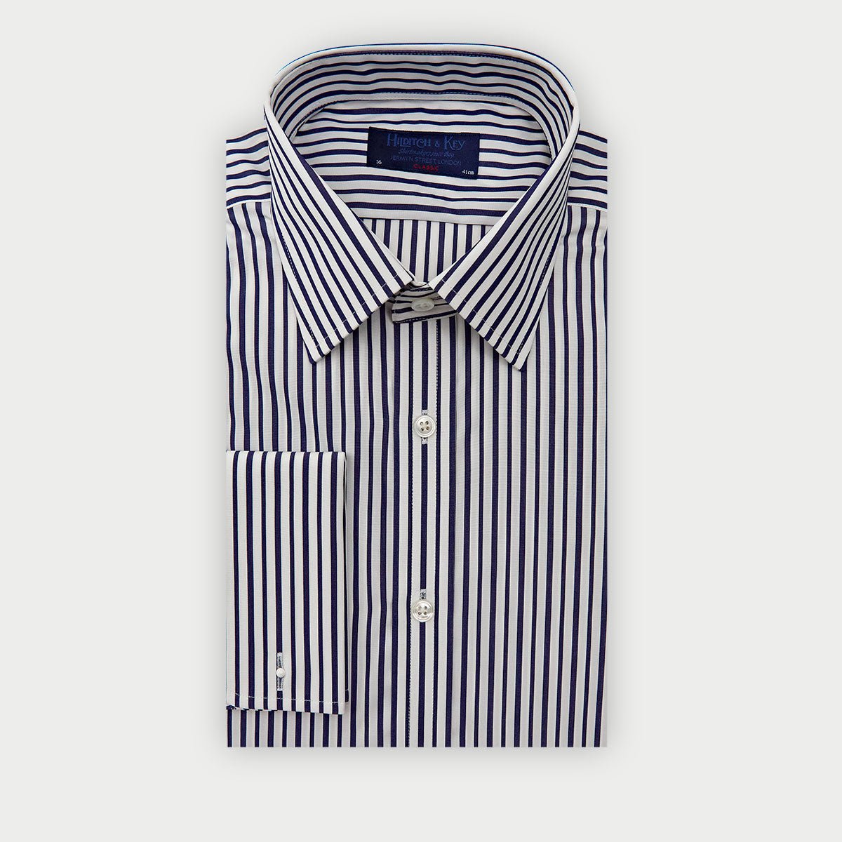 Classic Fit Navy Candy Stripe Cotton Shirt with Classic Collar & Double Cuff