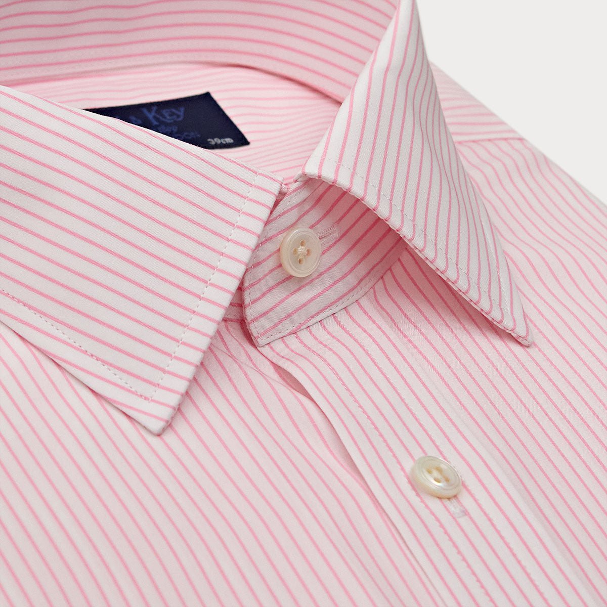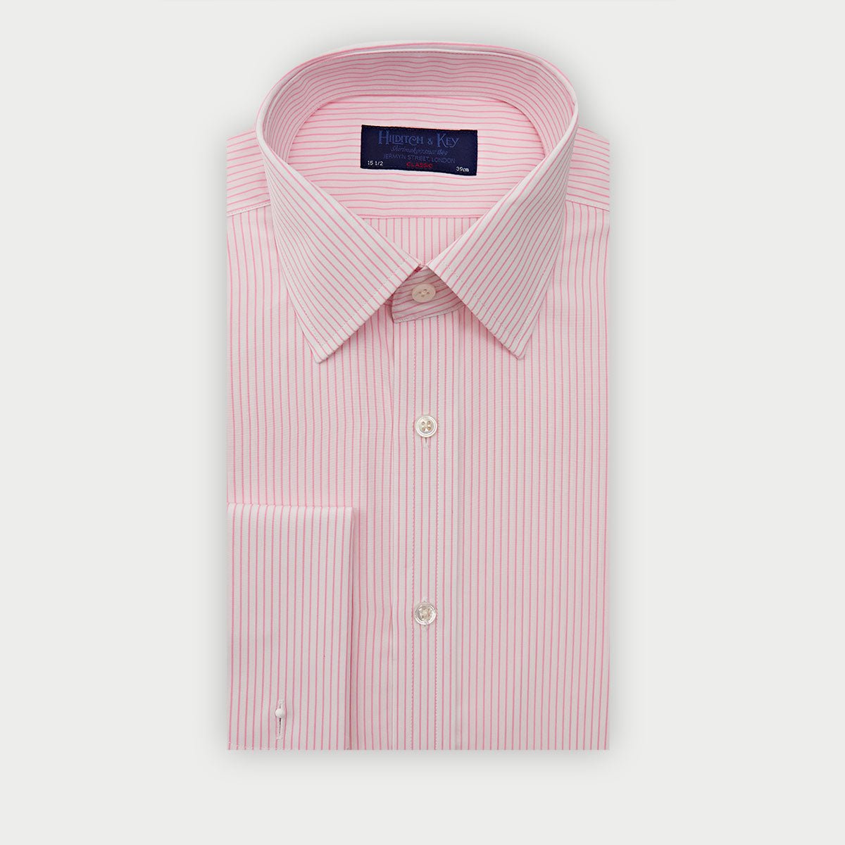 A timeless wardrobe essential from Hilditch & Key, this classic fit shirt combines refined tailoring with understated elegance. Crafted from premium cotton, the subtle pink pinstripe offers sophisticated versatility for both professional and smart-casual occasions. The traditional classic collar and double cuff provide structure and polish, while mother-of-pearl buttons add a luxurious finishing touch. Pattern matching throughout ensures impeccable attention to detail. Soft pink tones complement a range of complexions and pair effortlessly with navy, grey, or charcoal suiting.