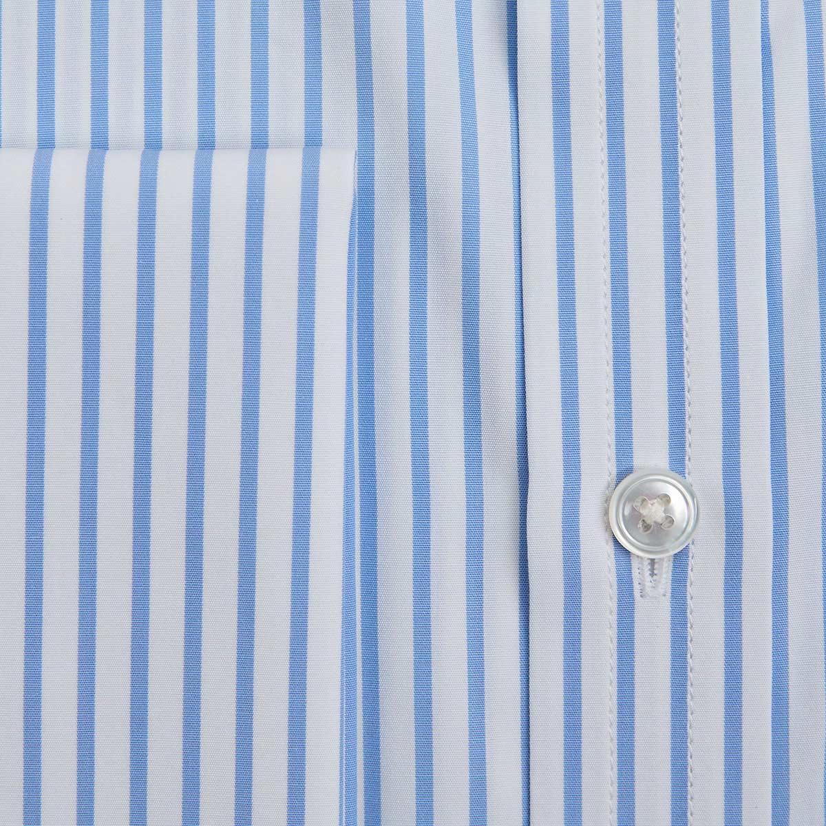 This Contemporary Fit shirt features a delicate light blue bar stripe on soft cotton poplin, offering a fresh and neat look. Designed with a classic collar and double cuffs, it combines timeless style with modern comfort, making it perfect for both workdays and casual outings.