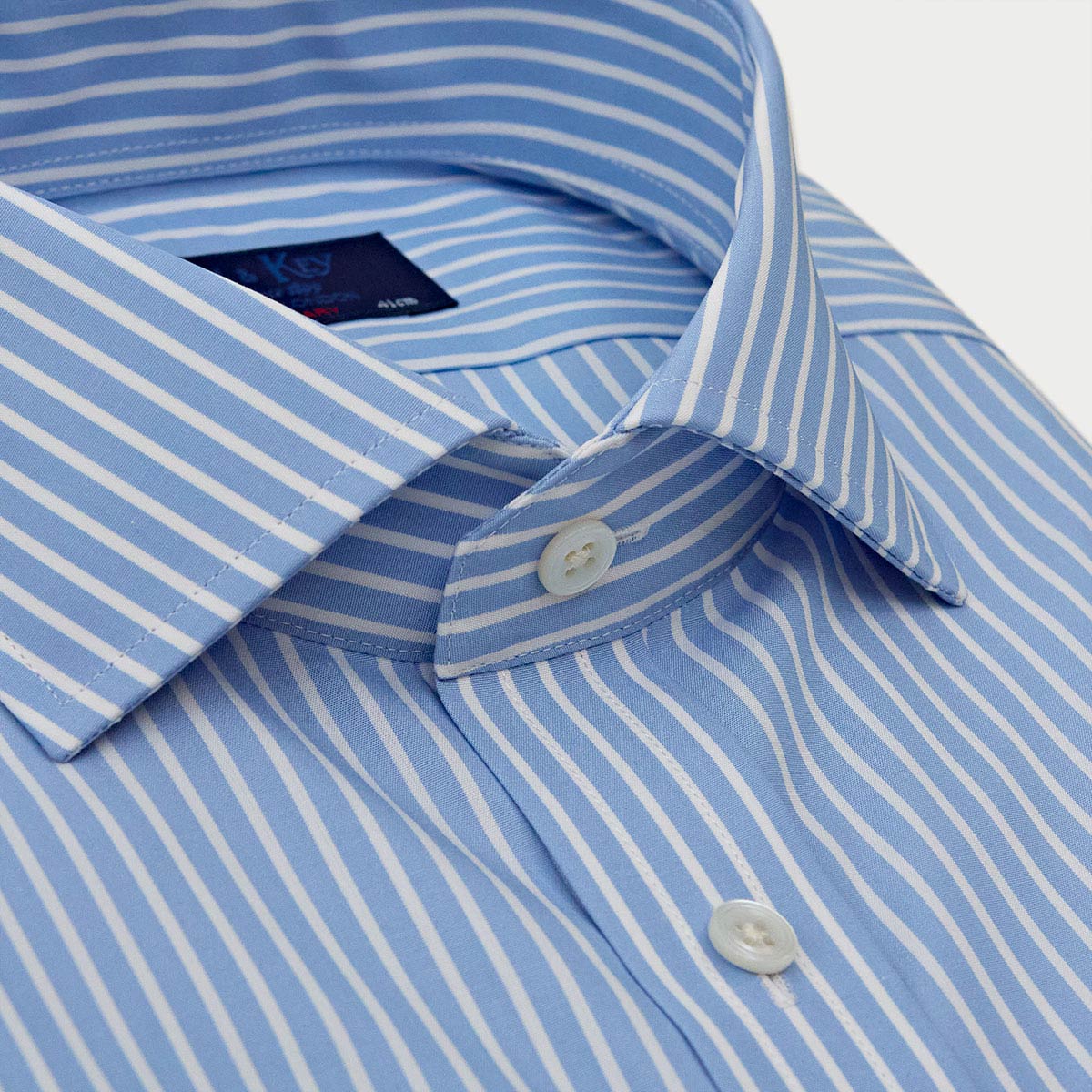 Contemporary Fit Light Blue & White Stripe Cotton Shirt with Cut-Away Collar & Two Button Cuff