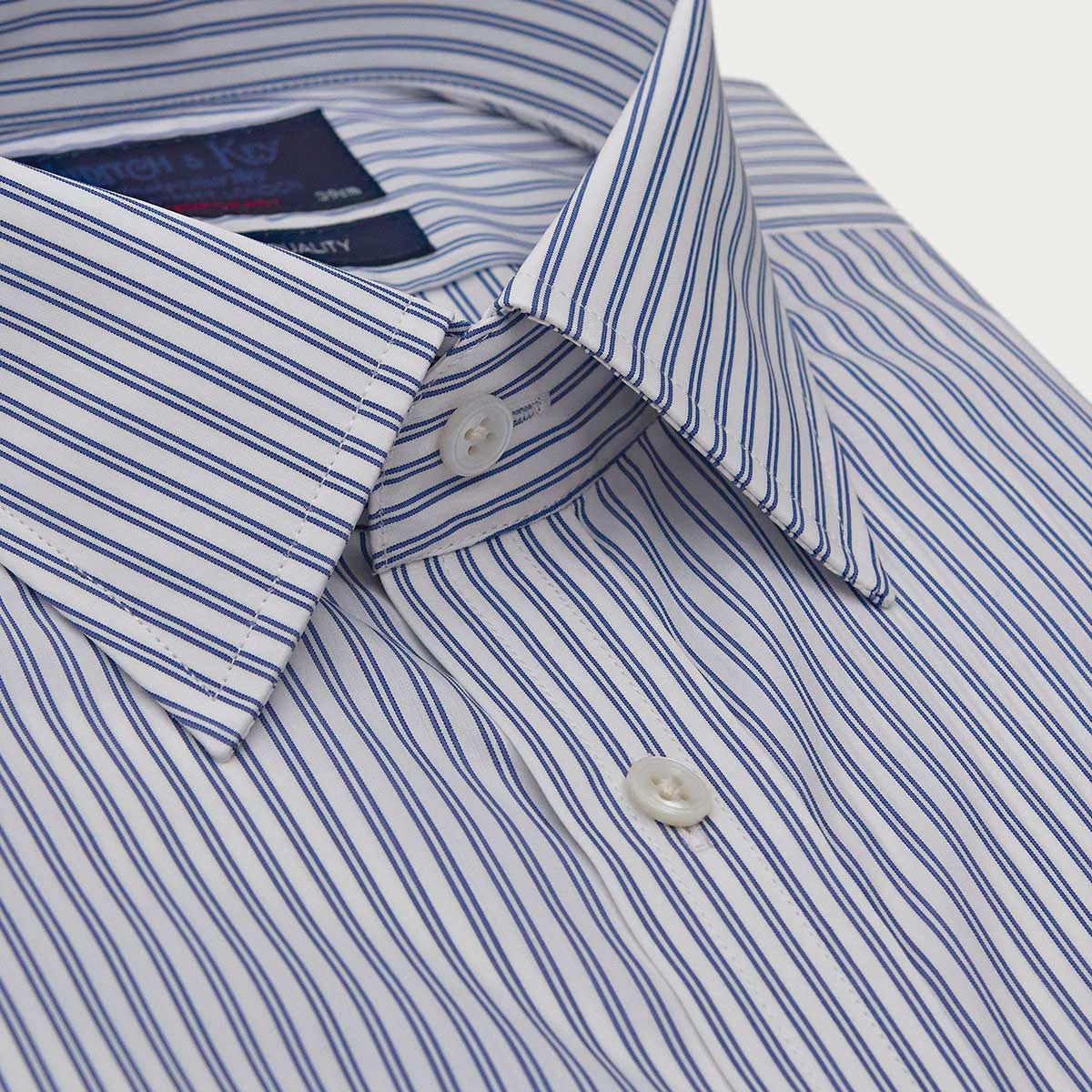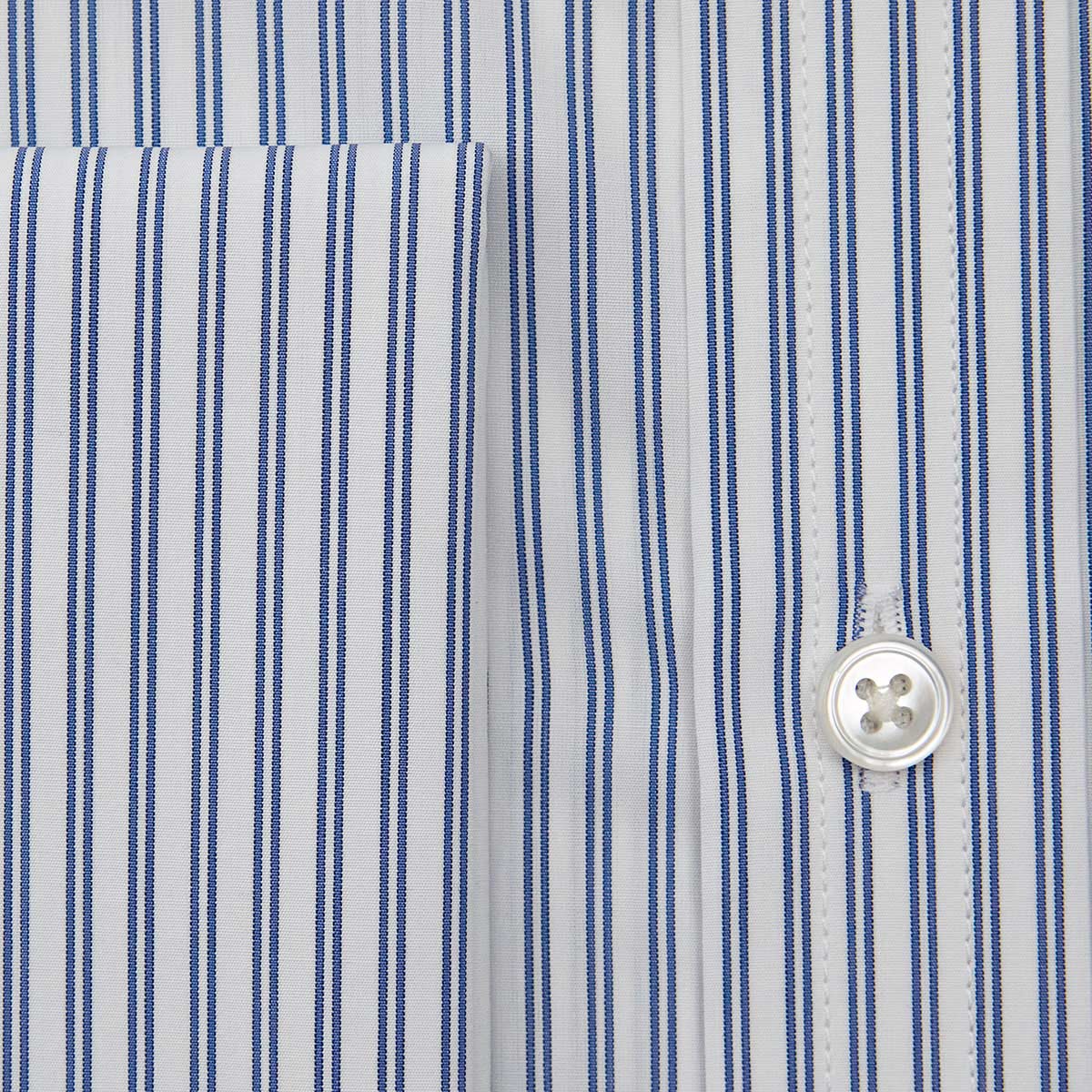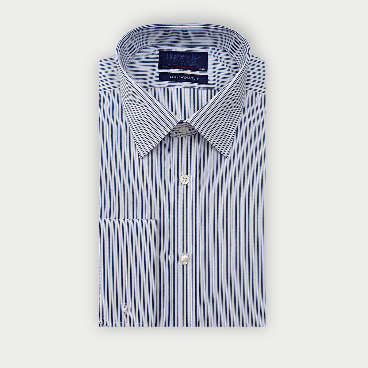 Contemporary Fit Navy Fine Double Stripe Sea Island Quality Cotton Shirt with Classic Collar & Double Cuff