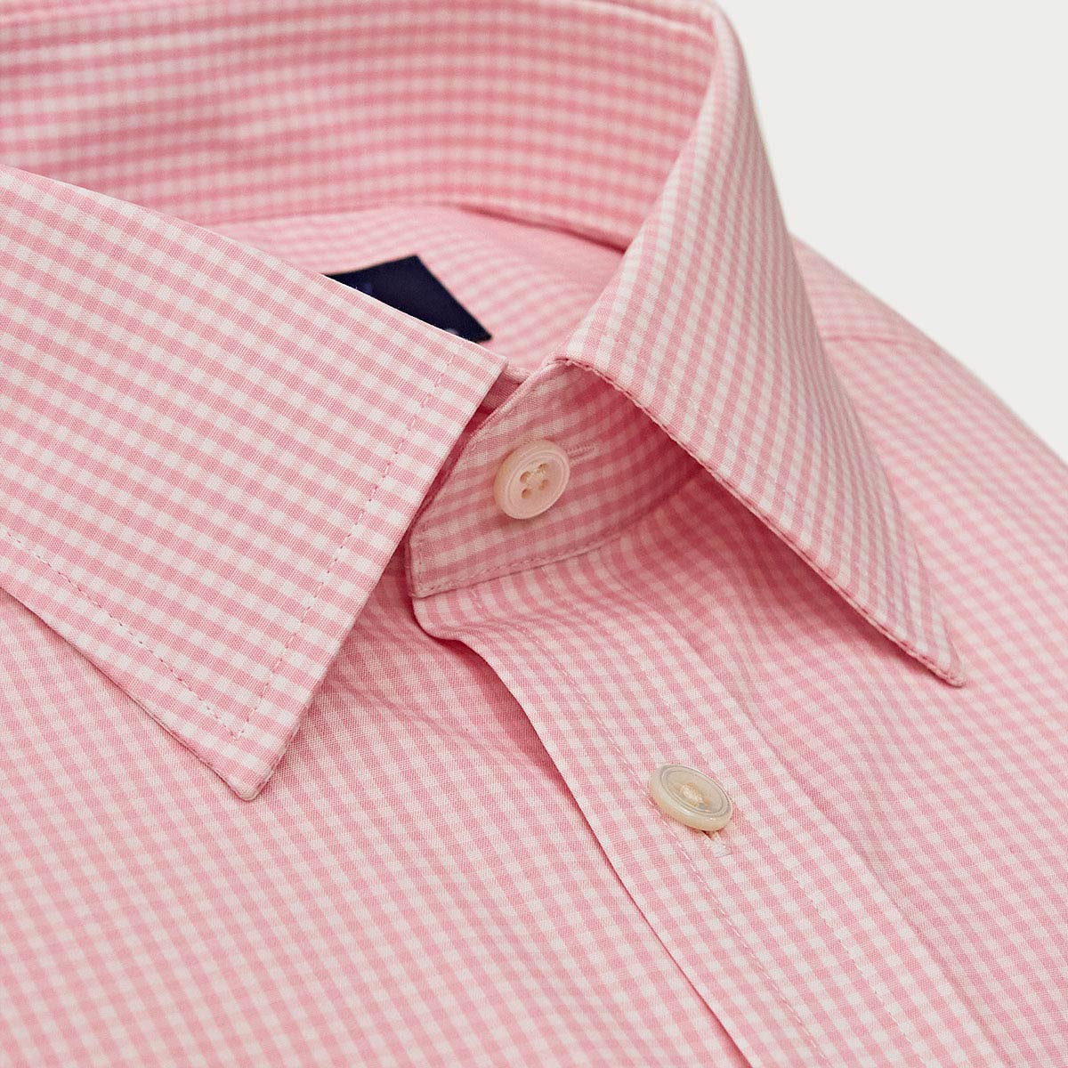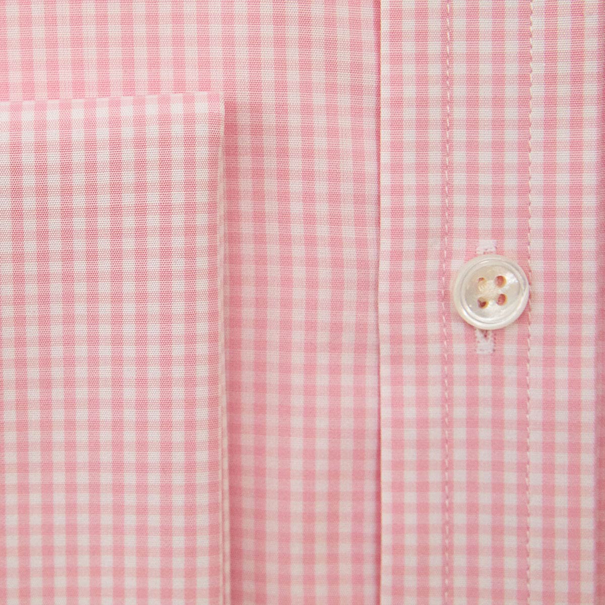 Elevate your everyday wardrobe with this contemporary fit shirt, featuring a refined pink gingham check pattern woven into premium cotton poplin. The classic collar and double cuff provide timeless sophistication, while mother of pearl buttons add a subtle luxury touch. Expertly tailored for a modern silhouette, this versatile piece transitions seamlessly from office to weekend wear, offering both comfort and enduring style.