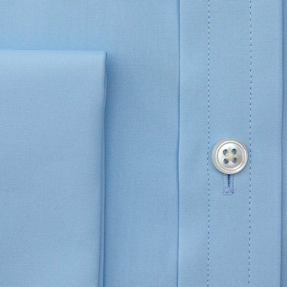 Contemporary Fit Plain Blue Cotton Poplin Shirt with Cut-Away Collar & Double Cuff
