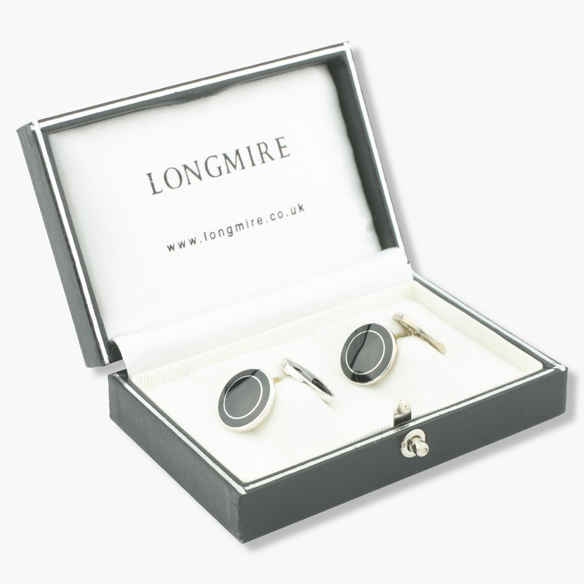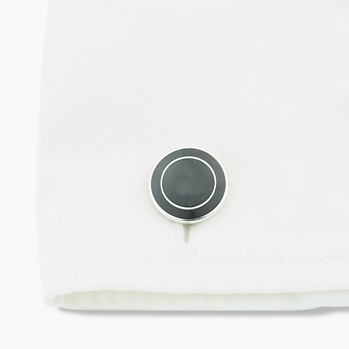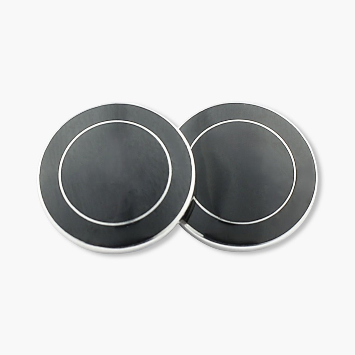 Longmire Sterling Silver Double Circle Black Cufflinks
