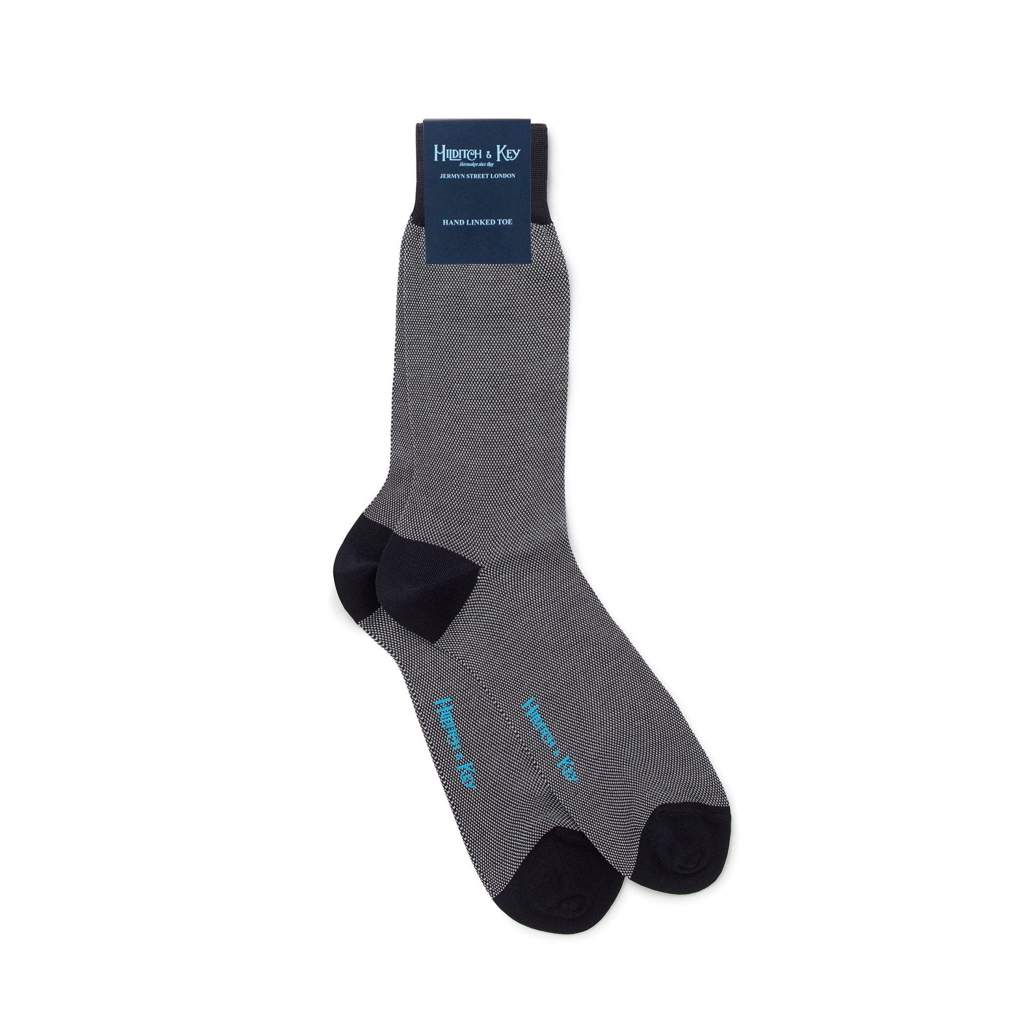 Designed for durability and comfort, these socks finish mid-calf and feature seamless toes and a ribbed design. Crafted in lightweight cotton with a discreet pin dot motif and contrasting heel and toe, they’re a trusty wardrobe staple for your everyday uniform.