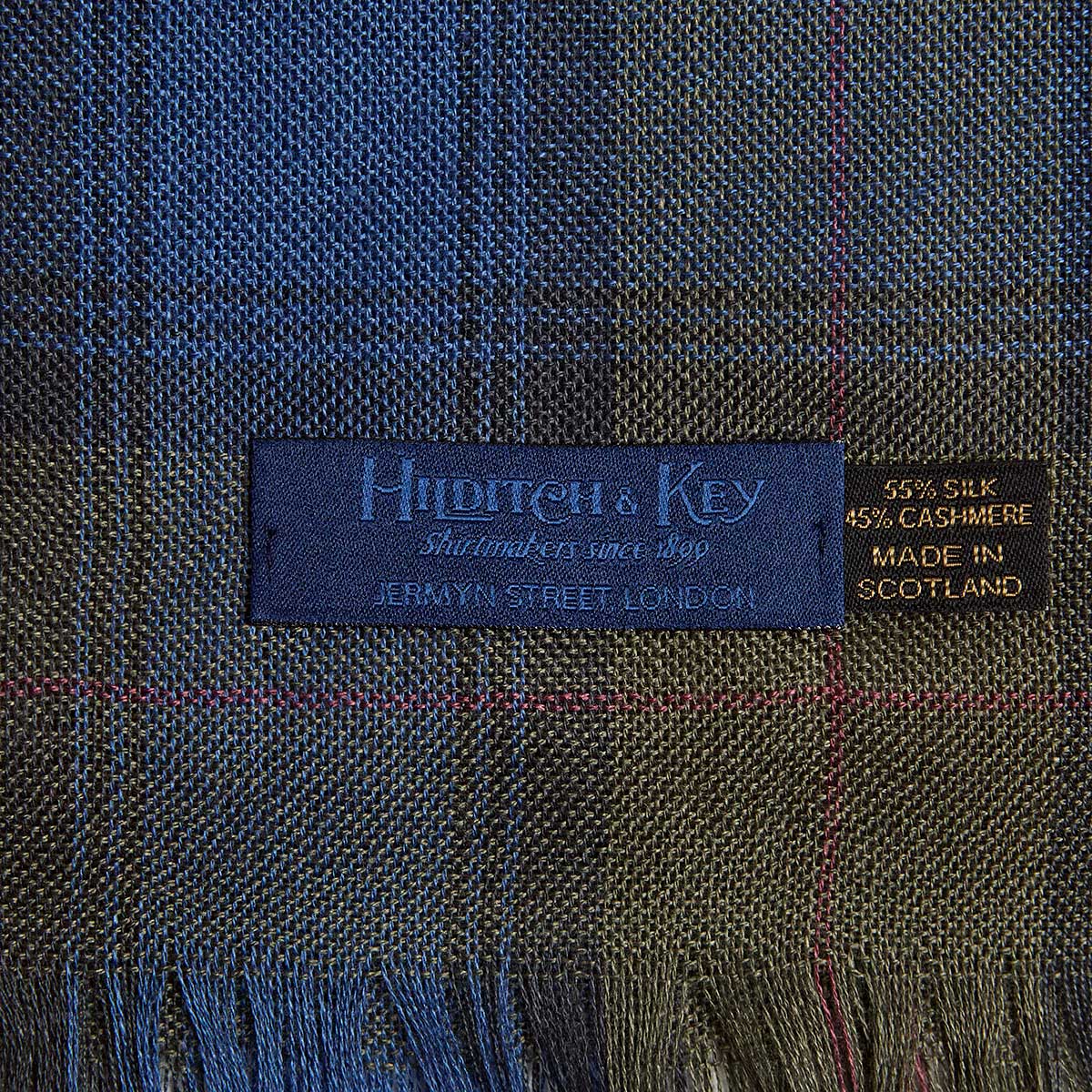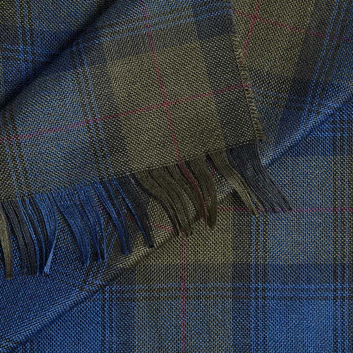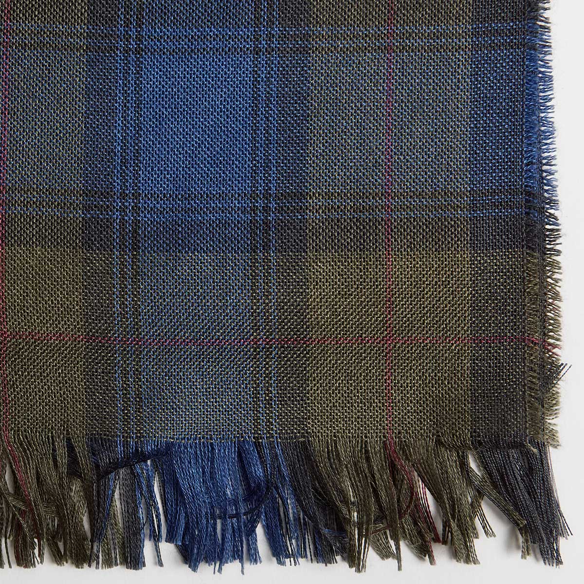 This Tonal Sage Large Check Scarf blends silk and cashmere for a smooth, lightweight feel with subtle warmth. Crafted in Scotland, its elegant blue and sage tones complement any outfit while fringed ends add a refined finishing touch. Perfect for those seeking understated sophistication and quality in a versatile accessory.